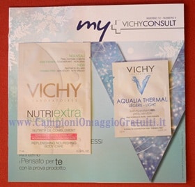 Gli amici che ci seguono e che sono iscritti al sito MySkyn di Vichy ricevono periodicamente il giornalino con i campioni gratuiti dei cosmetici Vichy da provare in anteprima.