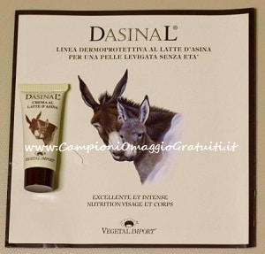 In questa foto il campioncino in formato minitaglia della crema al latte d’asina del marchio Dasinal ricevuta dal sito Vegetal Import.
