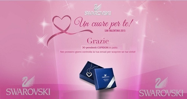 Concorso Swarovski San Valentino fino al 14/02/2015 con estrazione entro il 27/02/2015. In palio 30 Pendenti Cupidon Swarovski del valore di 81,15 euro cad,. ...