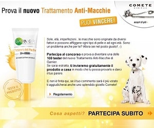 Concorso a premi Garnier Anti-Macchie che mette in palio 100 Trattamenti anti-macchie con estrazione il 28 febbraio.