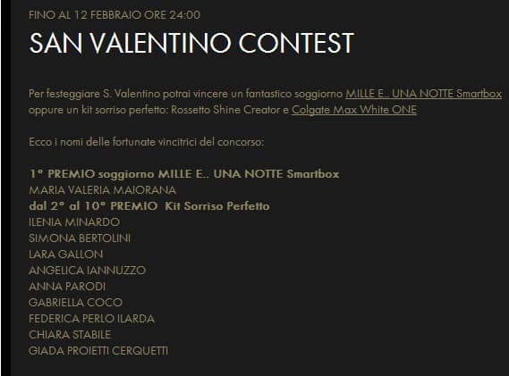 Dal 2° al 10° posto in palio un Kit composto da 1 Rossetto Shine Creator + 1 Dentrifricio Colgate Max White One.