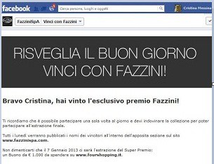 Dopo aver vinto il premio al Concorso Deborah ed al Concorso Erbolario ieri Cristina ha vinto uno dei premi in palio al Concorso Fazzini Instant Win.