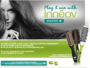 Concorso a premi Innèov valido fino al 27 Novembre 2012 che mette in palio 50 fantastici Kit di spazzole professionali Tec. Il gioco stile Memory consiste nel trovare le carte uguali degli ingredienti del prodotto. Per partecipare al Concorso Innèov inserite correttamente i vostri dati nel modulo altrimenti in caso di vincita non potrete ricevere il premio.