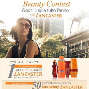 In palio 50 Kit di prodotti Lancaster ed un SuperPremio composto da un Kit di prodotti del valore di oltre 300 Euro.