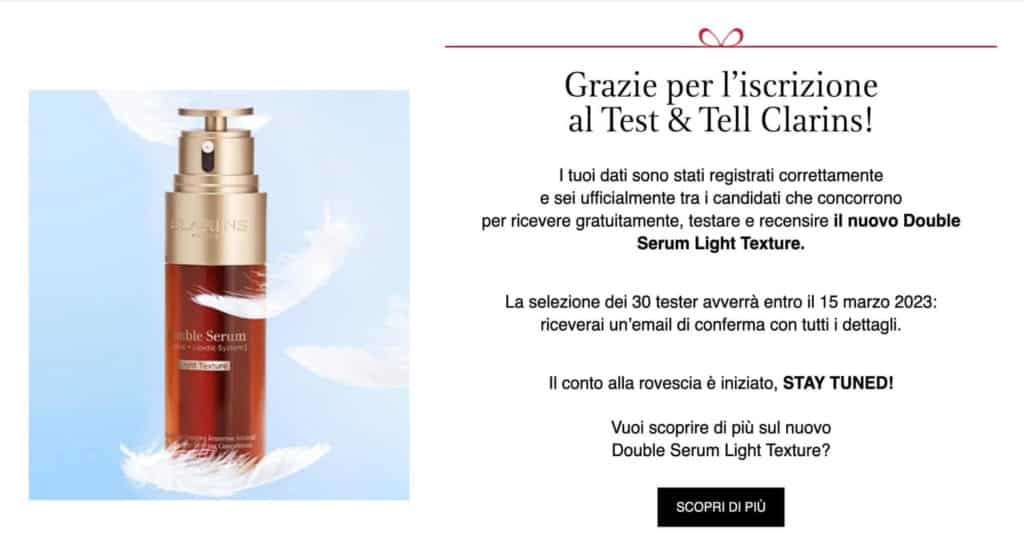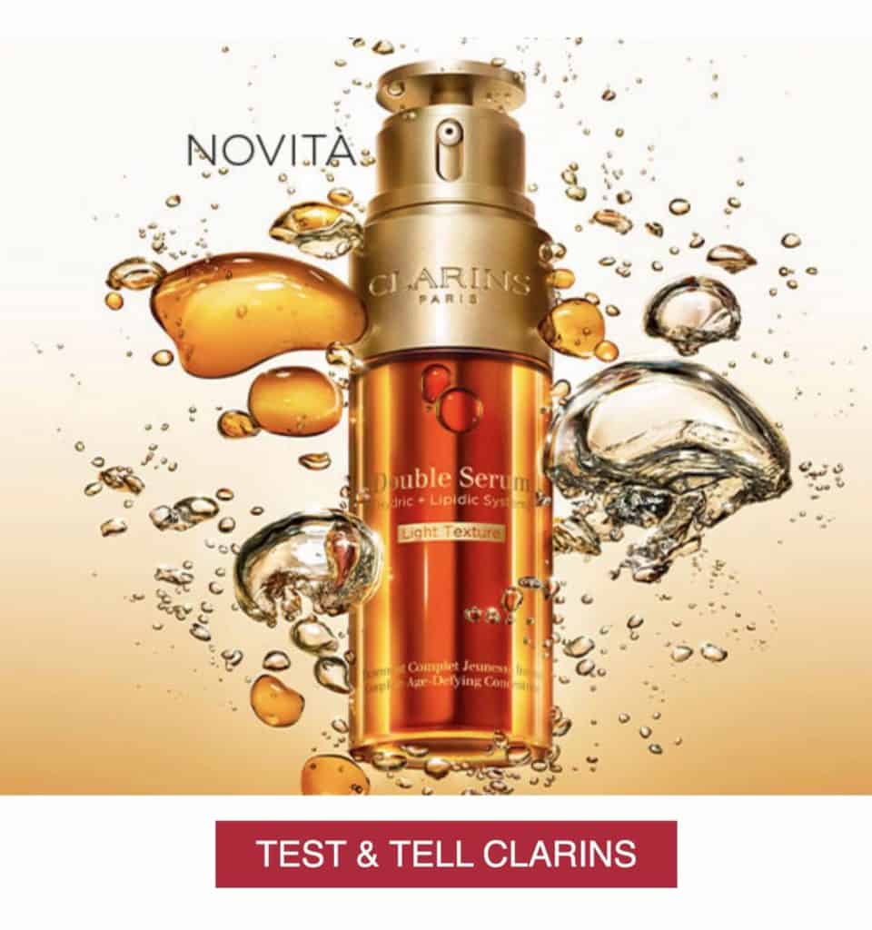 Diventa tester Clarins e ricevi gratis Clarins Double Serum Light Texture del valore di oltre 70 euro, in cambio della tua opinione.