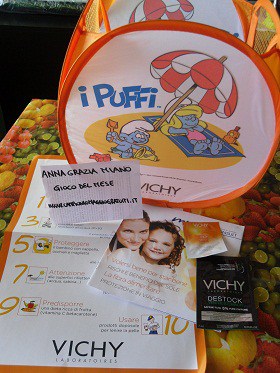 Il portagiochi dei Puffi che Anna Grazia ha ritirato in farmacia GRATIS e senza Obbligo di acquisto grazie all‘iniziativa promossa da Vichy in QUESTA FOTO che potete stampare e mostrare alle farmaciste che vi chiedono di fare un acquisto, presente anche sul retro del giornalino ricevuto ogni due mesi insieme ai Campioni Omaggio dei Cosmetici Vichy. Scoprite con Vichy e i Puffi le 10 regole per proteggere i bambini dal sole. Complimenti a Anna Grazia per questi 30 punti STRAMERITATI per il Gioco del Mese. Per ritirare GRATIS il portagiochi dei Puffi Vichy vi basta richiederlo nelle farmacie convenzionate Vichy.