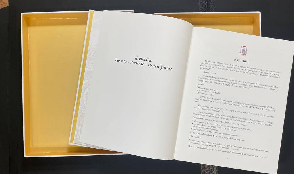 In occasione del Giubileo 2025 il maestro Giuliano Grittini ha creato l’opera d’arte Il Giubileo nella Storia. L’opera si compone di 20 tavole rilegate che esplorano il tema del Giubileo, arricchite da una tavola fuori volume aggiuntiva, firmata e numerata dallo stesso Grittini.