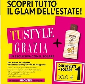 Oggi in edicola trovate le due riviste TuStyle e Grazia + un Solare Hawaiian Tropic al costo di 1 Euro.